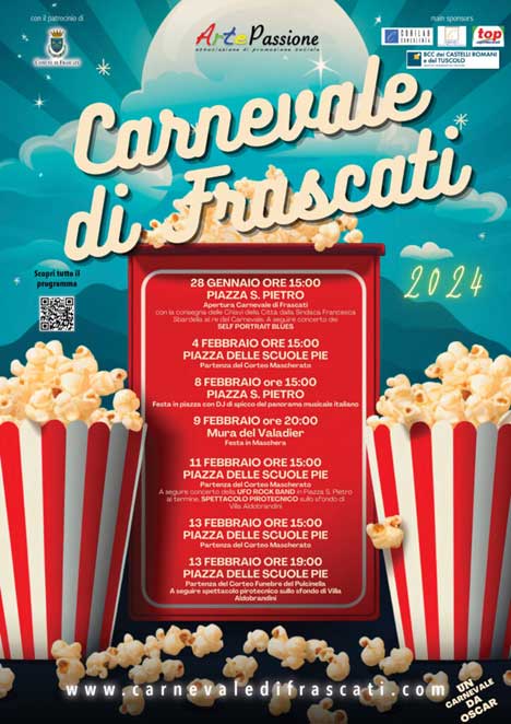 Sarà “Un Carnevale da Oscar” a Frascati che si prepara con la sfilata di gruppi mascherati a tema cinema, DJ set e l’immancabile sfilata tradizionale dei Pulcinella!